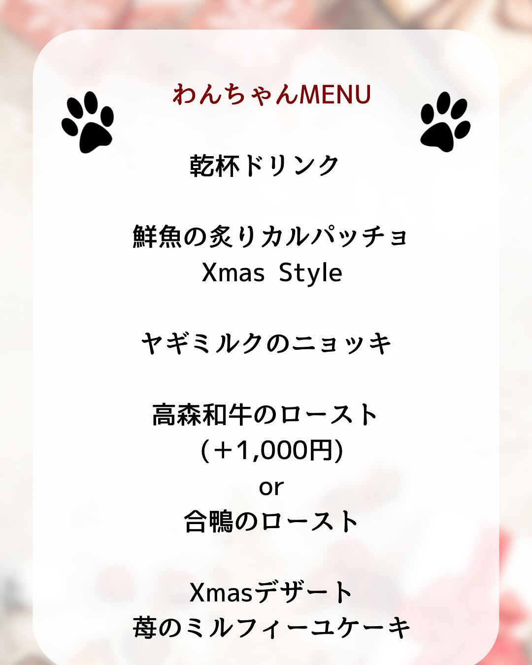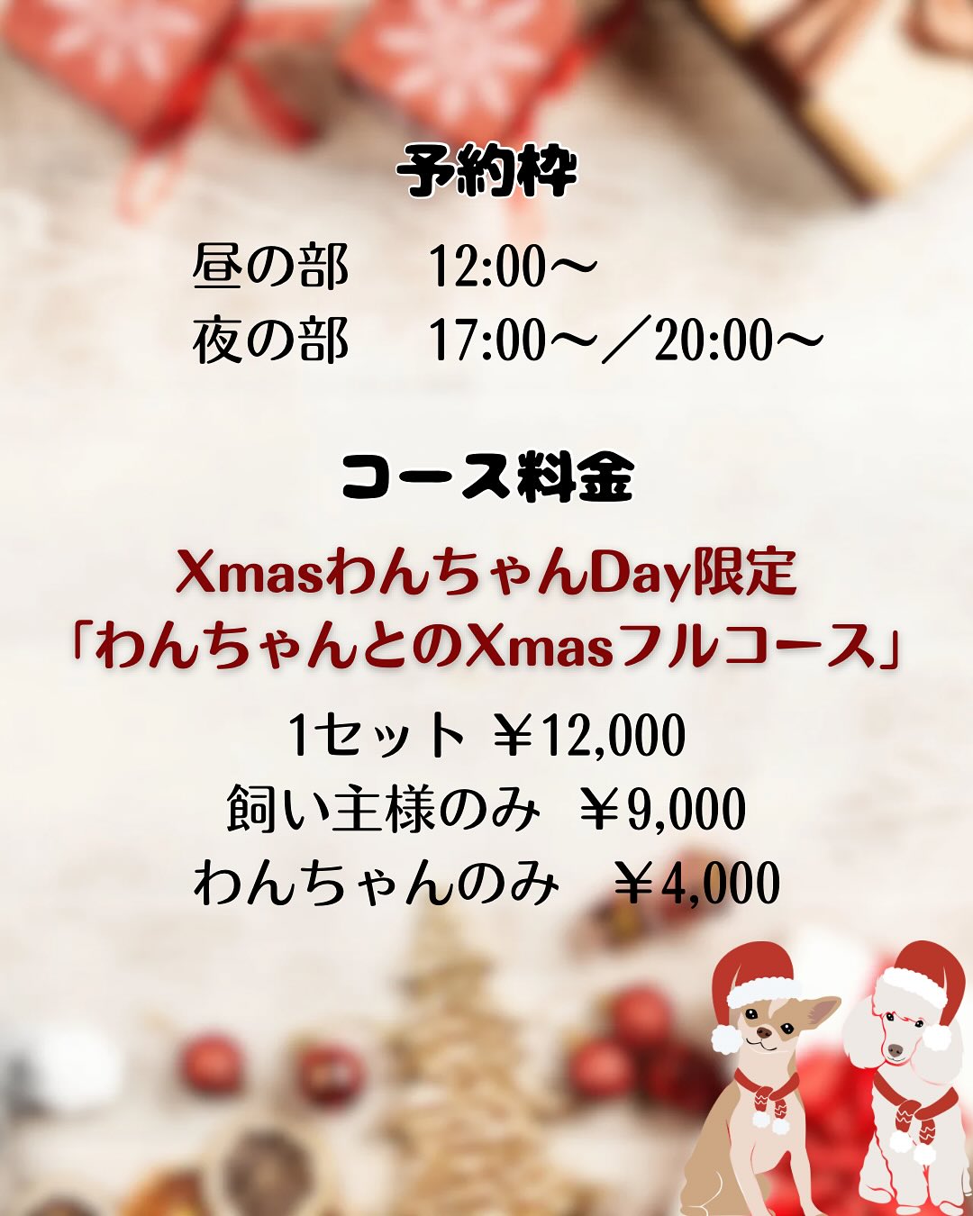 クリスマスディナーの期間中は、わんちゃんの頭数を制限させていただいております🏼♂️